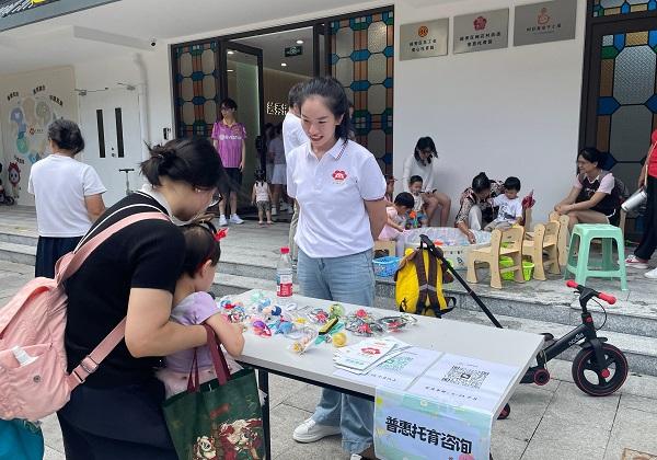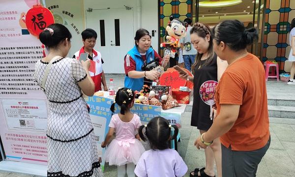 活动专区设置的“集市区”同样热闹非凡。社区医生健康咨询摊位前,家长们踊跃咨询婴幼儿护理与营养膳食问题;越秀区卫健局普惠托育园、向日葵亲子小屋等机构则为家长提供了专业的早教指导。慈善义卖区更是爱心涌动,由亲子家庭带来的闲置玩具、绘本等物品吸引大家驻足选购,在互动中传递温暖与善意。