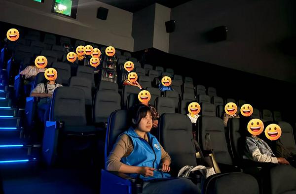 活动当天,服务对象齐聚影院,共同观看温情剧情片《浪浪人生》。影片轻松诙谐的叙事与温暖治愈的情感内核深深打动了在场观众,放映厅内不时传出会心的笑声。观影过程中,大家沉浸于剧情,偶尔低声交流感受,氛围轻松而融洽。社工与志愿者全程贴心陪护,密切关注每位服务对象的状态,及时响应需求,确保活动顺畅温馨。