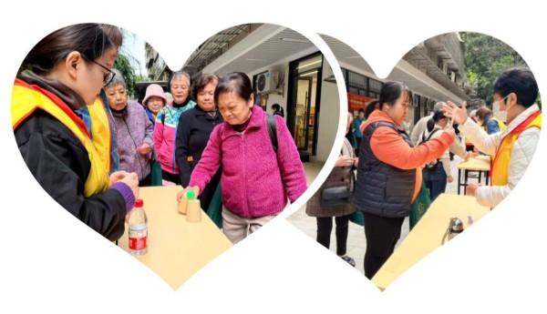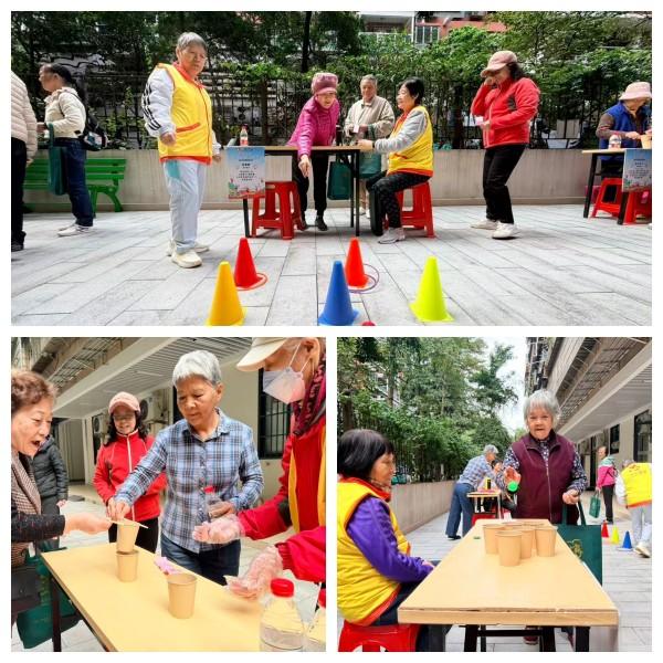 活动在欢声笑语中正式拉开帷幕,参与者们热情高涨、踊跃参与。在“杯底接球”摊位,参与者小心翼翼传递乒乓球,“梁婆婆,加油!快成功了!”志愿者的鼓励引来阵阵喝彩。“抓筷子”游戏则考验反应速度,杨阿姨在全神贯注中稳稳接住下落的筷子,兴奋地高举展示,赢得一片羡慕的目光。