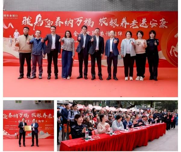 1月20日上午,建设街榕树头广场年味弥漫、暖意融融。在建设街党工委、街道办事处统筹指导下,由街公共卫生委员会、公服办、计生协、中国农业银行广州淘金支行及建设街“双百工程”社工服务站联合举办的“骏马迎春纳万福·农银养老送安康——金色岁月·农情相伴”系列主题活动热闹启幕。活动通过多样关怀举措,切实提升居民获得感与幸福感,传递文明过节新风,营造生育友好氛围,为社区送上了一份诚意满满的新春贺礼。